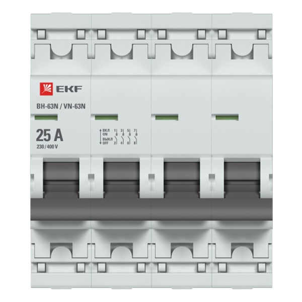 Выключатель нагрузки четыре полюса ВН-63N EKF на дин-рейку, 25 Ампер S63425