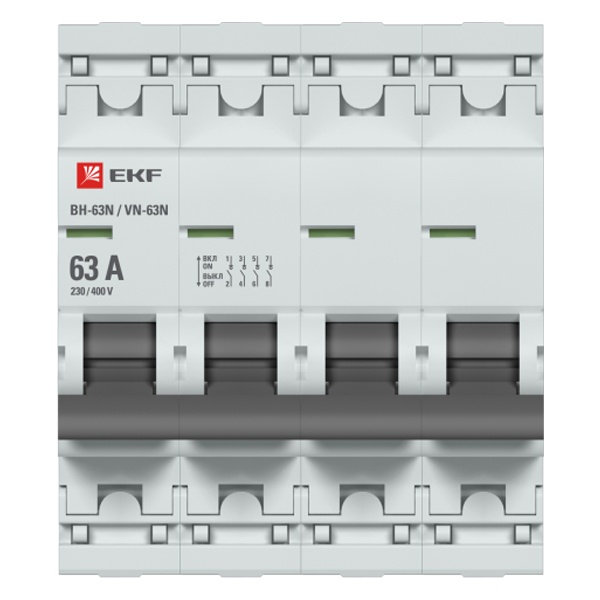 Выключатель нагрузки четыре полюса ВН-63N EKF на дин-рейку, 63 Ампера S63463