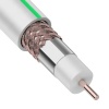 Этот коаксиальный кабель состоит из центрального проводника и двойного экрана, размещенных соосно. Внутренний одножильный проводник изготовлен из высококлассной меди и помещен в полиэтиленовый диэлектрик, способствующий сохранению соосного расположения проводников. Экран, наложенный на сердечник, имеет дополнительную плотную оплетку и благодаря этому надежно защищает передаваемый сигнал от внешних помех. Номинальное волновое сопротивление кабеля SAT 703B 75 Ом.