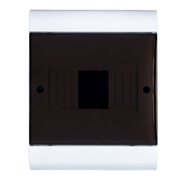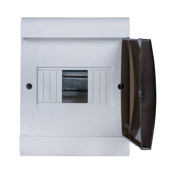Распределительный щит ЩРН от известной компании EKF серии SlimBox PROxima представляет собой компактную конструкцию настенной установки, служащую оболочкой для сборки различного модульного оборудования, устройств управления, таймеров и УЗО. Сфера применения данного бокса разнообразна: от жилых и офисных помещений до производственных цехов и торговых площадок. Он состоит из основания и двери, материалом изготовления которых служит прочный ABS-пластик глянцевого белого цвета. Он обеспечивает степень пыле- и влагозащиты IP41. Полноразмерная дверца имеет затемненный вид и эстетично вписывается в интерьер. Она обладает реверсивным типом установки, чем обеспечивает удобство. Внутреннее пространство оснащено DIN-рейкой, на которую производится монтаж 6 модульных устройств с номинальной величиной тока до 125 Ампер при напряжении сети 230-400 Вольт.