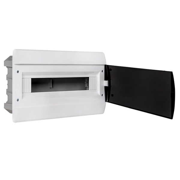 Распределительный бокс ЩРВ от известной компании EKF серии SlimBox PROxima представляет собой компактную конструкцию с установкой встраиваемого типа, которая служит оболочкой для сборки различного модульного оборудования, устройств управления, таймеров и УЗО. Сфера применения данного бокса разнообразна: от жилых и офисных помещений до производственных цехов, подвалов и промышленных секторов. Он состоит из каркаса и двери, материалом изготовления которых служит прочный ABS-пластик, обеспечивающий степень защиты IP41. Конструкция имеет глянцевый белый цвет, а полноразмерная дверца обладает затемненным видом с реверсивным типом установки. Для монтажа корпуса необходимо заранее подготовленное углубление в стене с максимальным размером: 225х390х80мм. Внутреннее пространство оснащено DIN-рейкой для установки 18 модулей с номинальной величиной тока 125 Ампер.