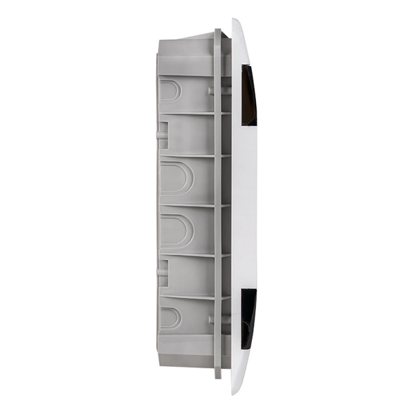Пластиковый корпус ЩРВ от производителя EKF серии SlimBox PROxima предназначен для установки модульного оборудования: автоматических выключателей, УЗО, устройств управления и таймеров. Он представляет собой компактную конструкцию встраиваемого типа, выполненную из прочного ABS-пластика белого цвета. Надежная степень защиты IP41 не допускает попадания внутрь твердых объектов и вертикально падающих капель.