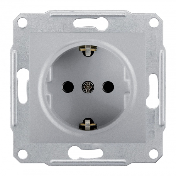 Розетка с заземлением, без шторок алюминий. серия продукта: Sedna - тип устройства или его аксессуаров: розетка - комплектация изделия: Без рамки - описание стандарта розетки: с заземляющим контактом. Преимущества: Sedna, профессиональная серия ЭУИ, которую по праву оценили электрики. Она имеет ряд преимуществ в удобстве и трудоемкости монтажа:.. применения: Гражданское и жилищное строительство..