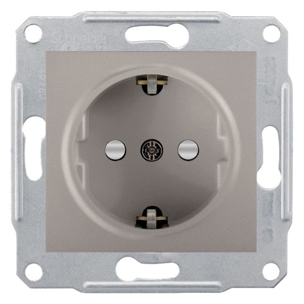 Встраиваемая розетка с защитным заземлением и шторками Sedna, накладкой цвета титан, номинальной нагрузкой 16А, подключение на самозажимные клеммы. SDN3001768