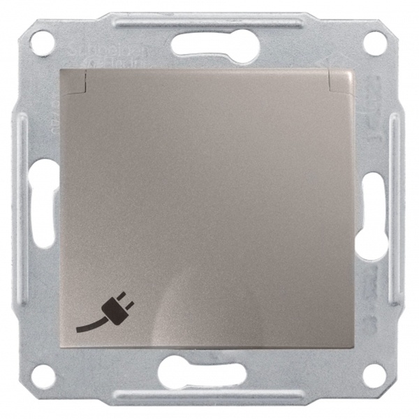 Силовая розетка Шнайдер Электрик Седна с заземляющим контактом, защитными шторками и крышкой, цвет титан SDN3100468