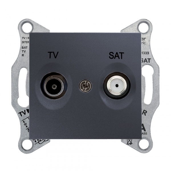 TV/SAT розетка оконечная, графит. тип устройства или его аксессуаров: розетка TV/SAT - ТВ розетка: оконечная розетка. Преимущества: Sedna, профессиональная серия ЭУИ, которую по праву оценили электрики. Она имеет ряд преимуществ в удобстве и трудоемкости монтажа:.. применения: Гражданское и жилищное строительство..