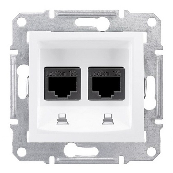 Компьютерная розетка двойная катушка 5е неэкранированная UTP, белый. тип устройства или его аксессуаров: компьютерная розетка - комплектация изделия: Без рамки - оттенок цвета закрывающей панели: белый. Преимущества: Sedna, профессиональная серия ЭУИ, которую по праву оценили электрики. Она имеет ряд преимуществ в удобстве и трудоемкости монтажа:.. применения: Гражданское и жилищное строительство..