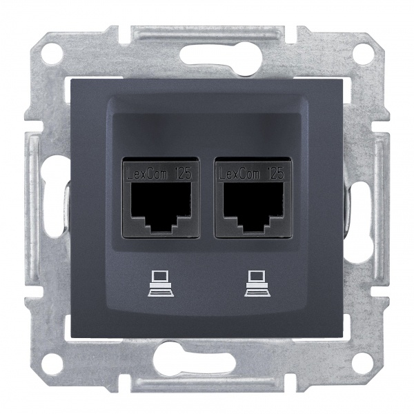 Компьютерная розетка х2, графит. тип устройства или его аксессуаров: компьютерная розетка - комплектация изделия: Без рамки - оттенок цвета закрывающей панели: графит. Преимущества: Sedna, профессиональная серия ЭУИ, которую по праву оценили электрики. Она имеет ряд преимуществ в удобстве и трудоемкости монтажа:.. применения: Гражданское и жилищное строительство..