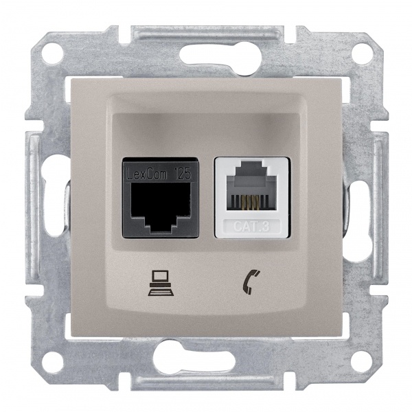 Телефонная+компьютерная розетка, титан. тип устройства или его аксессуаров: розетка для подкл. телефона/компьютера - тип телефонного розетки: RJ11. Преимущества: Sedna, профессиональная серия ЭУИ, которую по праву оценили электрики. Она имеет ряд преимуществ в удобстве и трудоемкости монтажа:.. применения: Гражданское и жилищное строительство..