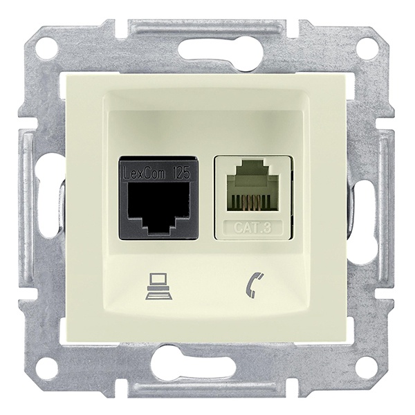 Информационная розетка скрытого монтажа Шнайдер Электрик Седна с разъемами RJ11+RJ45, неэкранированная UTP категории 6, цвет слоновая кость SDN5200147