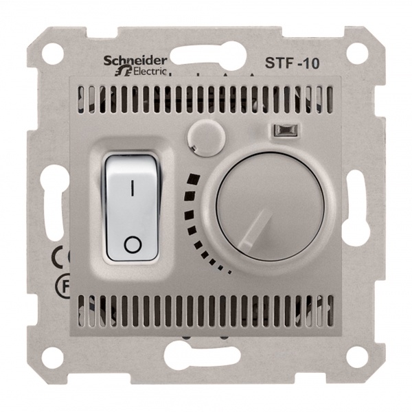 Механический регулятор температуры теплого пола в помещении Шнайдер Электрик серии Седна на нагрузку 2300 Ватт, цвета титан. SDN6000368