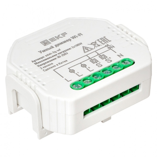 Умный 2-канальный Wi-Fi диммер скрытой установки компании EKF Connect предназначен для управленияосвещением с помощью смартфона и регулировки яркости. Умный диммер предназначен для использования с соответствующими светильниками/патронами с номинальным напряжением 230 В частотой 50 Гц. Регулятор света подходит для управления яркостью ламп накаливания и диммируемых светодиодных ламп.Для работы умного реле необходимо наличие беспроводной сети Wi-Fi с частотой 2,4 ГГц и выходом в сеть Интернет. Управление умным реле осуществляется с любого устройства на базе операционной системы Android 4.4 / IOS 8.0 или выше. Для управления необходимо установить приложение EKF Connect.