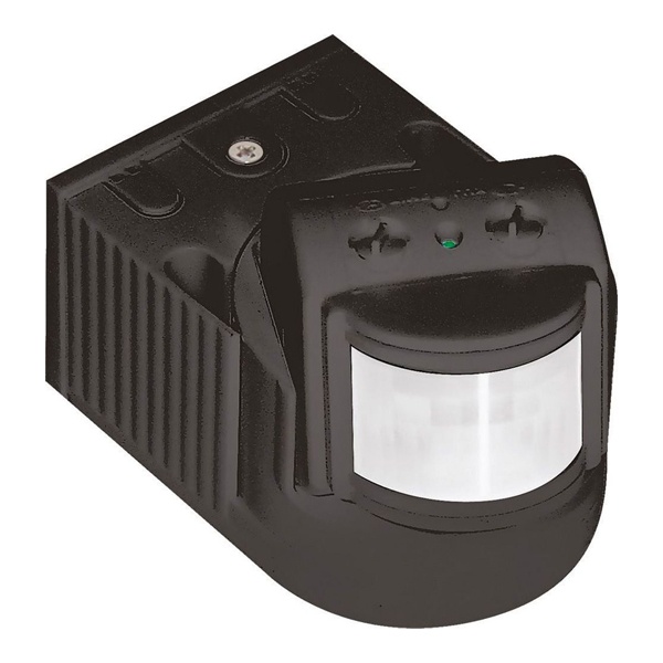 Датчик движения черного цвета мощностью 1200 Ватт с дальностью обнаружения 12 метров и углом обзора 180°. SEN8-BL