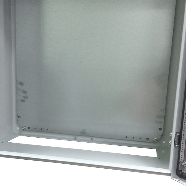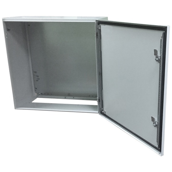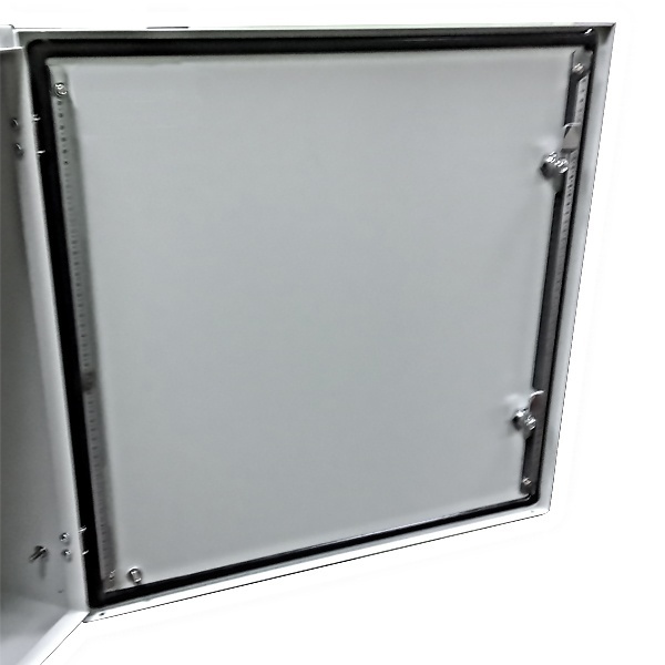 Щит накладного исполнения с монтажной панелью для установки слаботочного и электротехнического оборудования. Изготовлен из листового металла толщиной 1,5 мм, уплотнитель на двери для обеспечения степени защиты от влаги и пыли IP66. Для крепления на стену или металлоконструкции имеется 4 отвестия диаметром 8,5 мм на задней стенке шкафа. Порошковая краска. Универсальные петли позволяют вешать дверь для открытия слева или справа. Поставляется с наклейкой "заземление" и проводом для заземления двери на корпус ящика, длиной 200 мм и с опрессованными наконечниками с двух сторон.