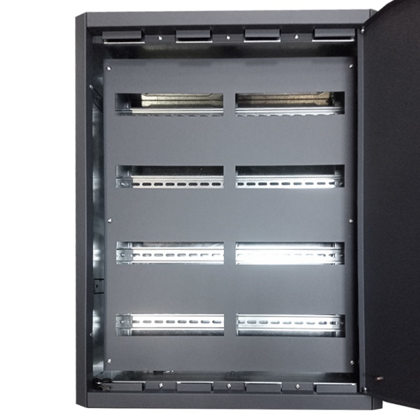 Шкаф распределительный в нишу 96 представляет собой распределительный щит, спроектированный для удобной и безопасной установки в стену с возможностью скрытого монтажа. Он обладает степенью защиты IP31 и может достигнуть первого класса защиты с применением комплекта заземления. Вмещает 96 модулей, оборудованный 4-мя DIN-рейками.