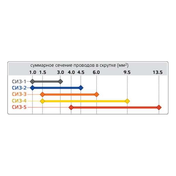 Встроенная конусообразная анодированная пружина обеспечивает надежную фиксацию и соединение проводов, а корпус выполняет функцию изоляции. Удобство СИЗов заключается в быстроте монтажа и возможности многократного использования.
