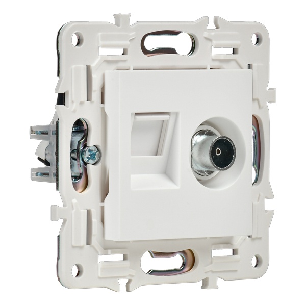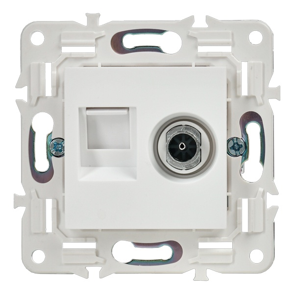 Одноместная комбинированная розетка с разъемом TV и RJ45 скрытого монтажа цвет белый SK-AK20-1-K01