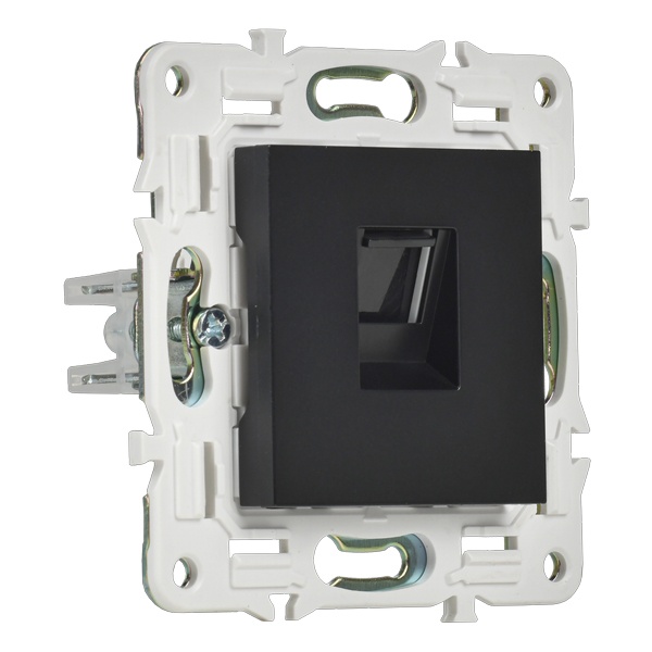 Одноместная информационная розетка с разъемом RJ45 категории 5е скрытого монтажа цвет черный SK-K10-1-K02