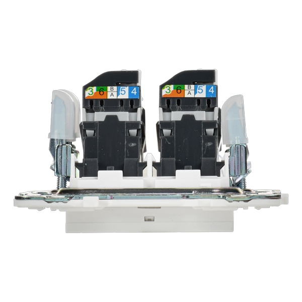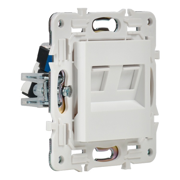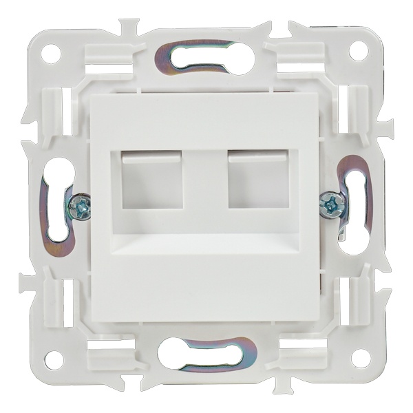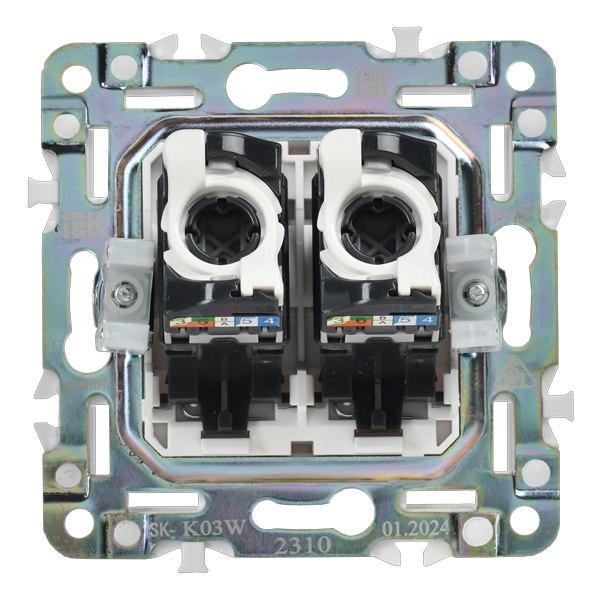 Одноместная информационная розетка с двумя разъемами RJ45 категории 5е скрытого монтажа цвет белый SK-K20-1-K01