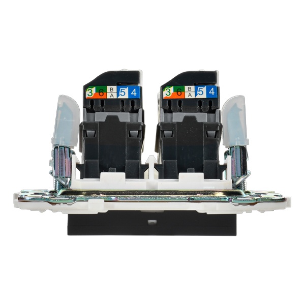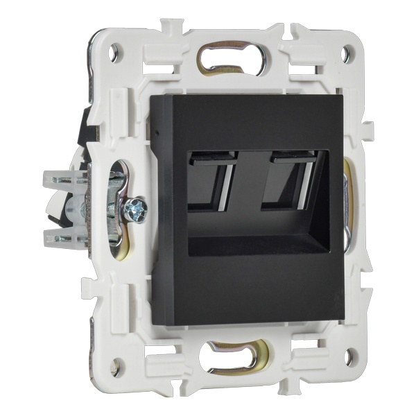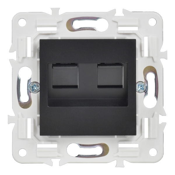 Одноместная информационная розетка с двумя разъемами RJ45 категории 5е скрытого монтажа цвет черный SK-K20-1-K02