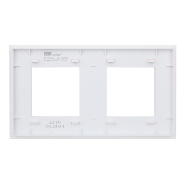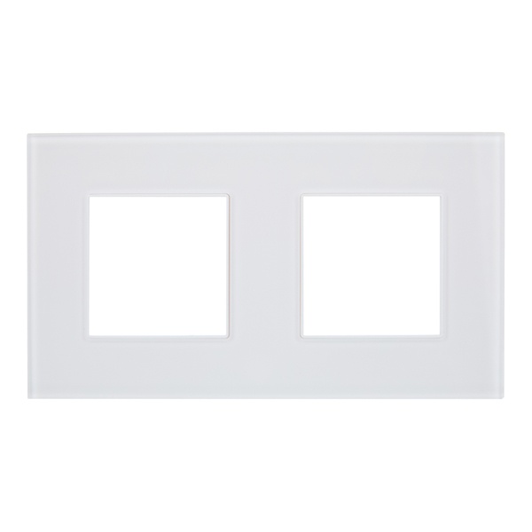 Декоративное, двухпостовое стеклянное обрамление для электроустановочных механизмов, цвет белый SK-M22-G-K01