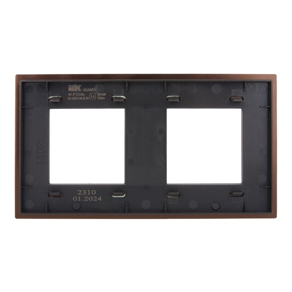 Декоративное, двухпостовое металлическое обрамление для электроустановочных механизмов, цвет шоколад SK-M22-M-K30