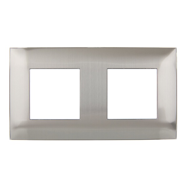 Декоративное, двухпостовое металлическое обрамление для электроустановочных механизмов, цвет никель SK-M22-M-K50