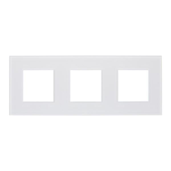 Декоративное, трехпостовое стеклянное обрамление для электроустановочных механизмов, цвет белый SK-M32-G-K01