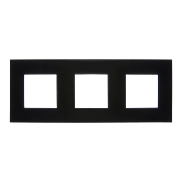 Декоративное, трехпостовое стеклянное обрамление для электроустановочных механизмов, цвет черный SK-M32-G-K02