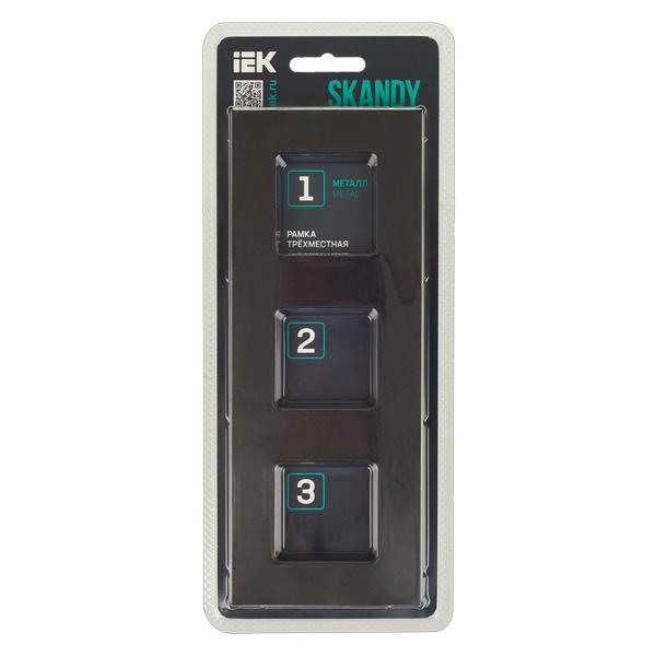 Декоративное, трехпостовое металлическое обрамление для электроустановочных механизмов, цвет черный SK-M32-M-K02