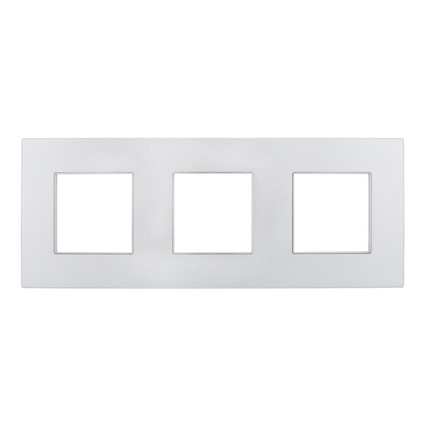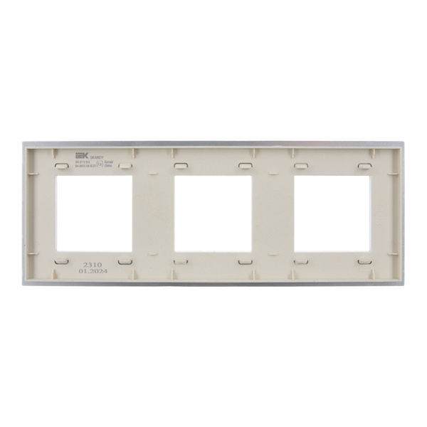 Декоративное, трехпостовое металлическое обрамление для электроустановочных механизмов, цвет серебро SK-M32-M-K23