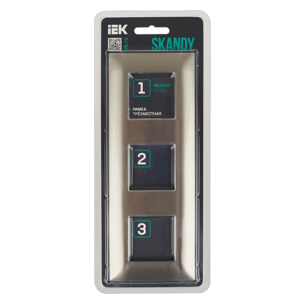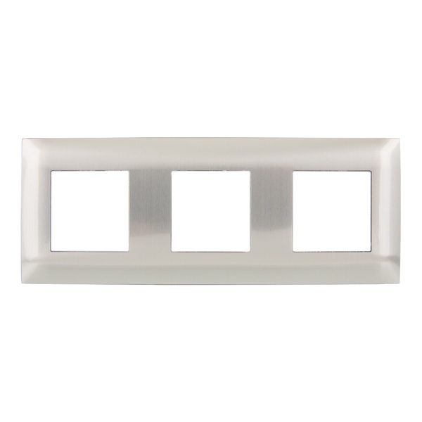 Декоративное, трехпостовое металлическое обрамление для электроустановочных механизмов, цвет никель SK-M32-M-K50