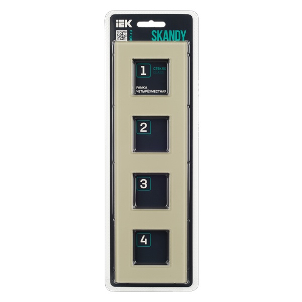 Декоративное, четырехпостовое стеклянное обрамление для электроустановочных механизмов, цвет бежевый SK-M42-G-K10