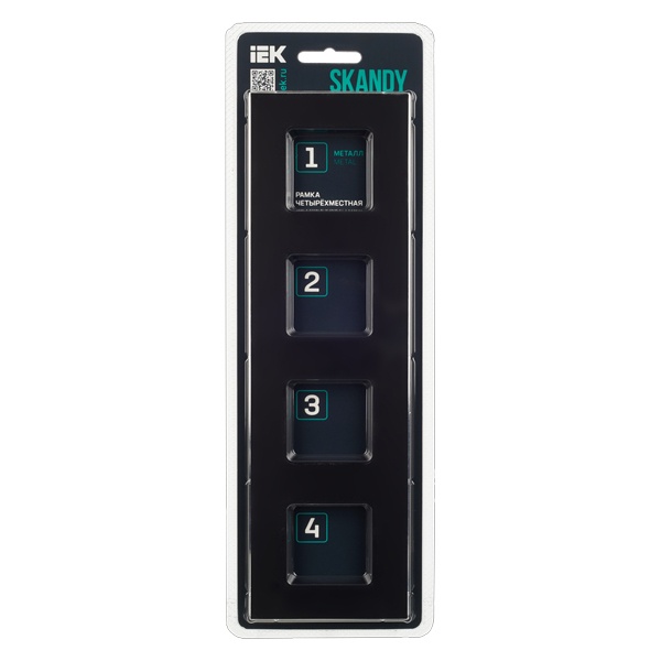 Декоративное, четырехпостовое металлическое обрамление для электроустановочных механизмов, цвет черный SK-M42-M-K02