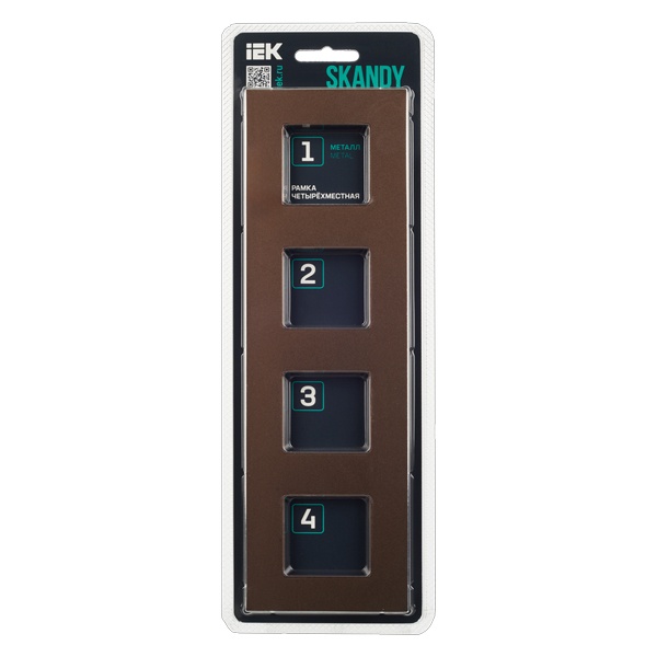 Декоративное, четырехпостовое металлическое обрамление для электроустановочных механизмов, цвет шоколад SK-M42-M-K30