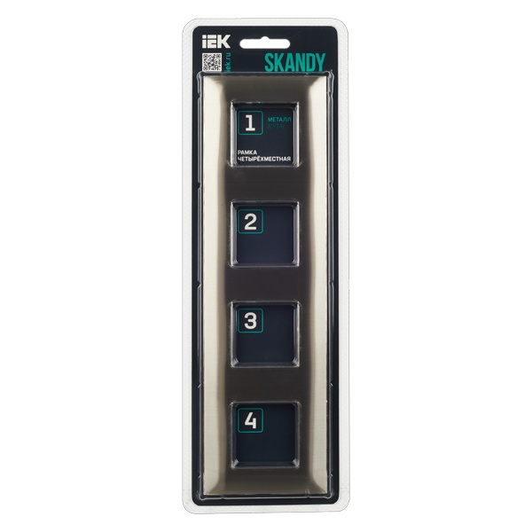 Декоративное, четырехпостовое металлическое обрамление для электроустановочных механизмов, цвет никель SK-M42-M-K50