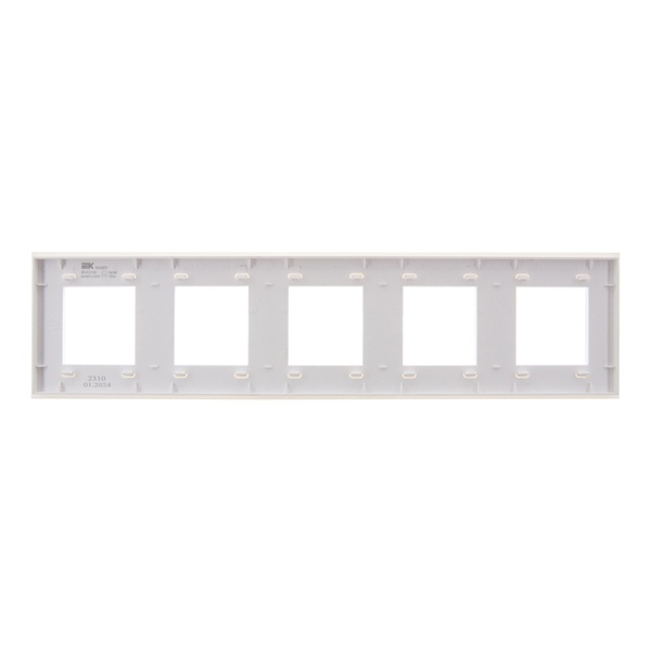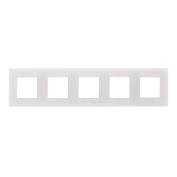 Декоративное, пятипостовое стеклянное обрамление для электроустановочных механизмов, цвет белый SK-M52-G-K01