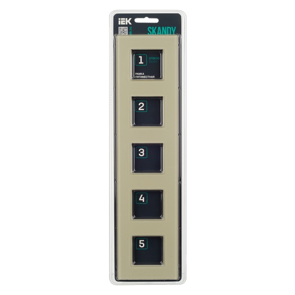 Декоративное, пятипостовое стеклянное обрамление для электроустановочных механизмов, цвет бежевый SK-M52-G-K10