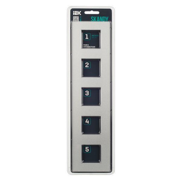 Декоративное, пятипостовое металлическое обрамление для электроустановочных механизмов, цвет серебро SK-M52-M-K23