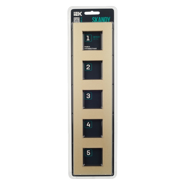 Декоративное, пятипостовое металлическое обрамление для электроустановочных механизмов, цвет шампань SK-M52-M-K37