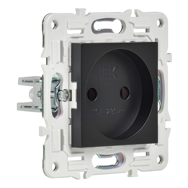 Одноместная электрическая розетка без заземляющих контактов, винтовые зажимы скрытого монтажа цвет черный SK-R10-10-K02