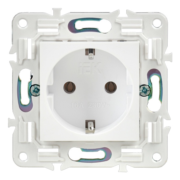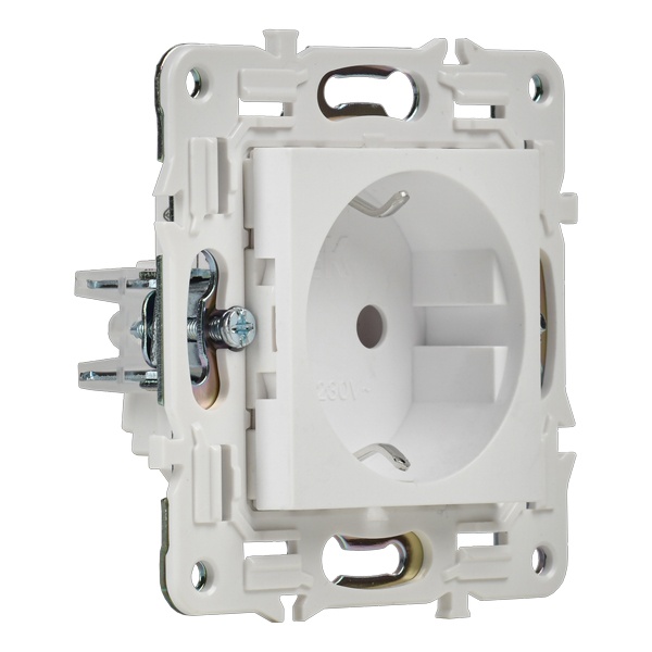 Одноместная электрическая розетка с заземляющими контактами, винтовые зажимы скрытого монтажа цвет белый SK-R11-16-K01