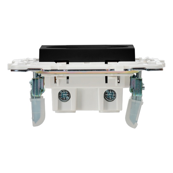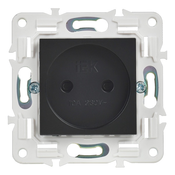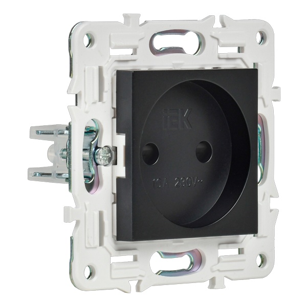 Одноместная электрическая розетка без заземляющих контактов с защитными шторками, винтовые зажимы скрытого монтажа цвет черный SK-R13-10-K02