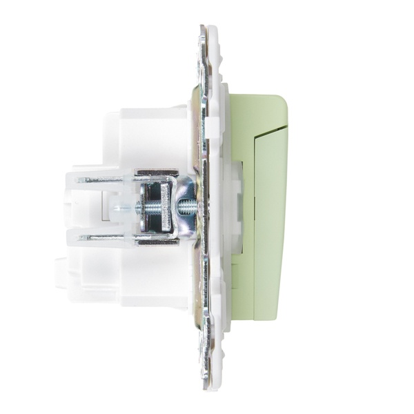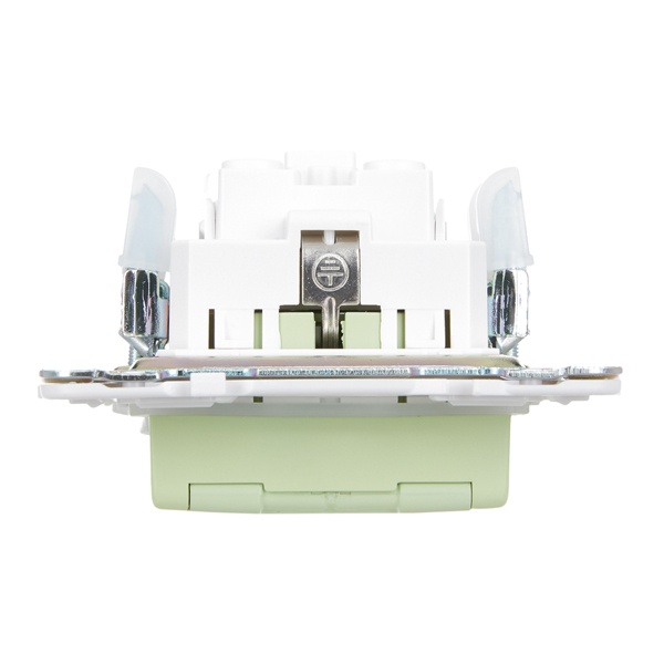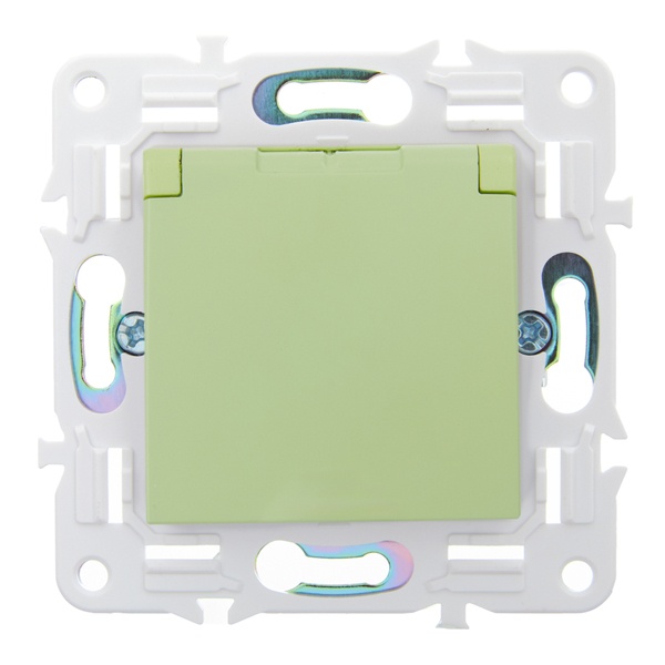 Одноместная электрическая розетка с защитными шторками, заземляющими контактами и крышкой, винтовые зажимы скрытого монтажа цвет мятный SK-R16-16-44-K06