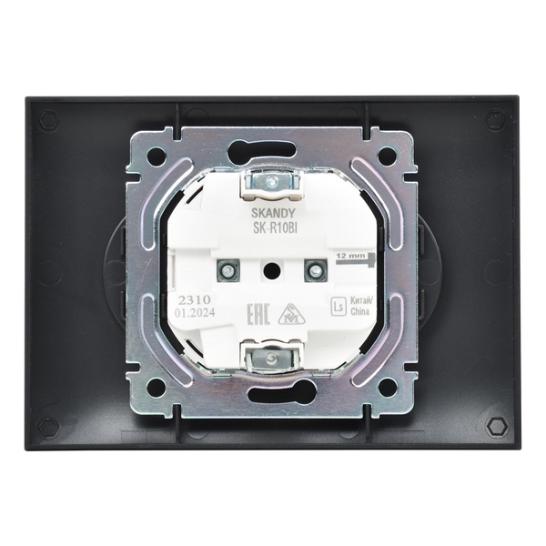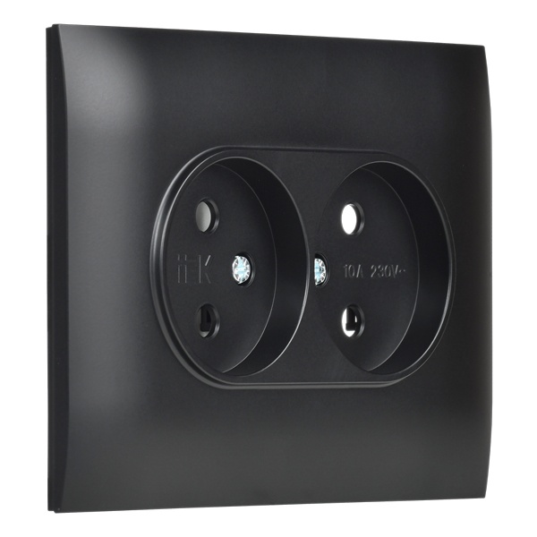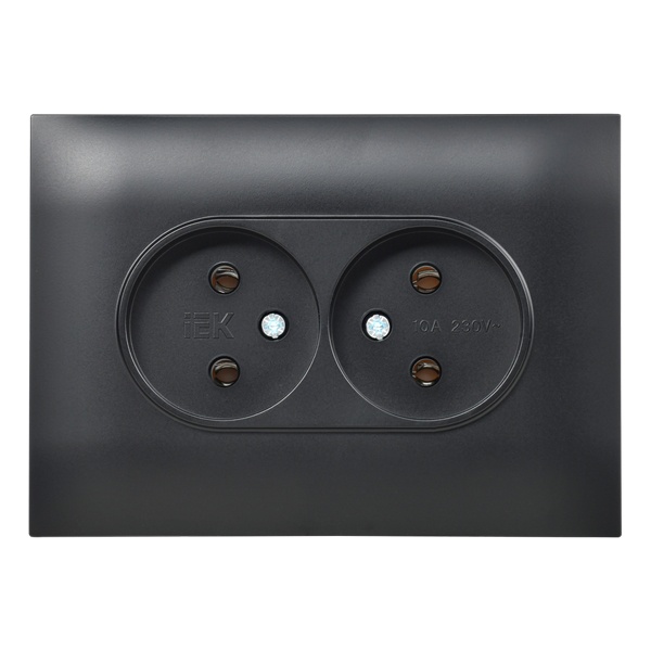 Двухместная электрическая розетка без заземляющих контактов, винтовые зажимы скрытого монтажа цвет черный SK-R20-10-K02-F