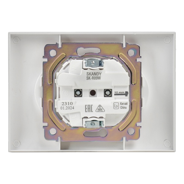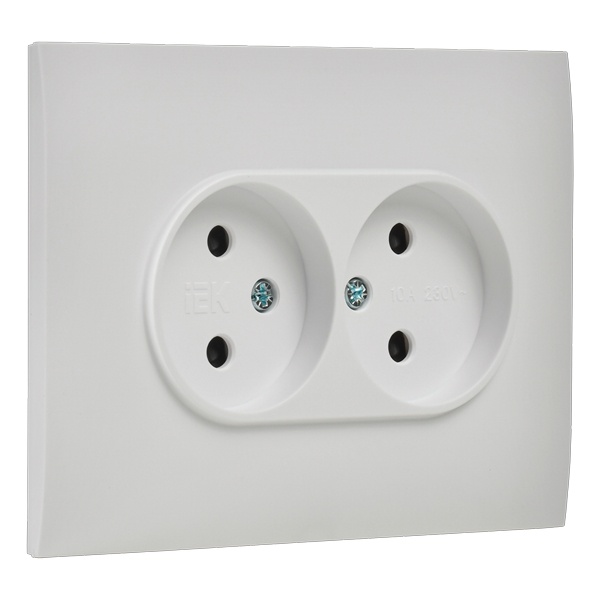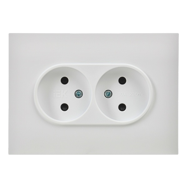 Двухместная электрическая розетка без заземляющих контактов с защитными шторками, винтовые зажимы скрытого монтажа цвет белый SK-R23-10-K01-F