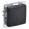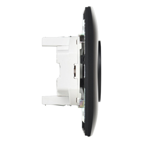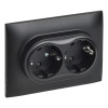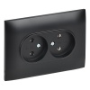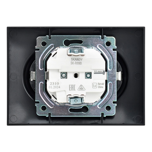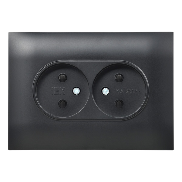 Двухместная электрическая розетка без заземляющих контактов с защитными шторками, винтовые зажимы скрытого монтажа цвет черный SK-R23-10-K02-F