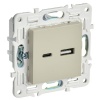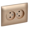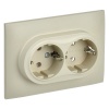 Двухместная электрическая розетка без заземляющих контактов с защитными шторками, винтовые зажимы скрытого монтажа бежевого цвета SK-R23-10-K10-F