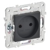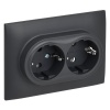 Двухместная электрическая розетка без заземляющих контактов с защитными шторками, винтовые зажимы скрытого монтажа цвета титан SK-R23-10-K48-F