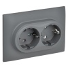 Двухместная электрическая розетка с заземляющими контактами с защитными шторками, винтовые зажимы скрытого монтажа серого цвета SK-R24-16-K03-F